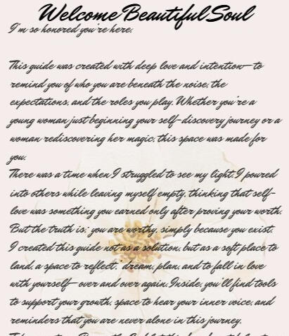 This guide was created with deep love and intention-- to remind you of WHO YOU ARE beneath the noise, the expectations, and the roles you play. Whether you're a young woman just beginning your self-discovery journey or a woman rediscovering her magic, this space was made for YOU.* For secure processing, you will be redirected to our official checkout page on Stan Store to complete your payment.